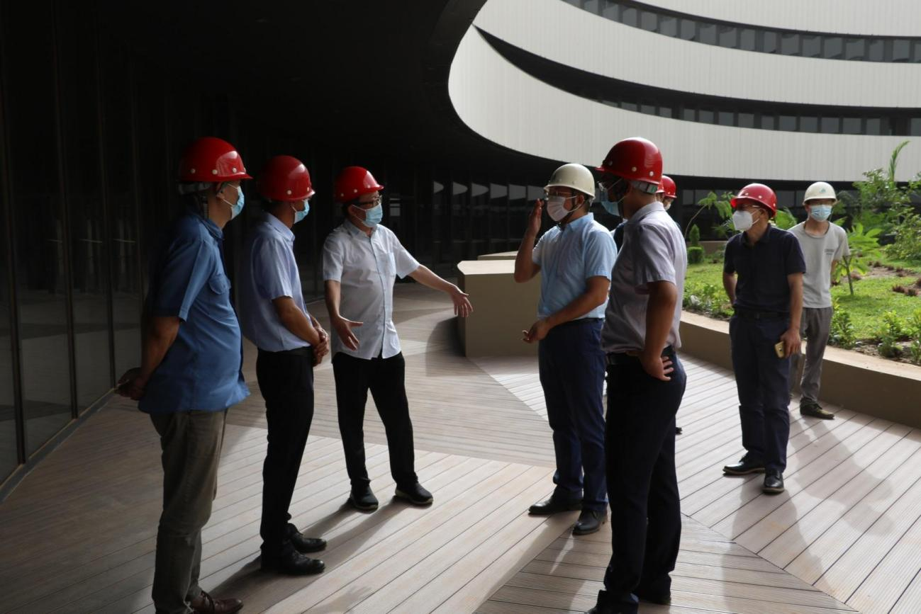 Director-General Wu, Ambassador Xiao and the delegation visited the entrance hall of the main building, the underground circular meeting room, the inner ring corridor, the third-floor office and the outdoor landscape, and listened to the reports on the scale and progress of the project. In the inner ring corridor, Director-General Wu mainly learned about the waterproof practice of the landscape roof around the circular meeting room, and highly praised the company's strict measures in construction quality control.