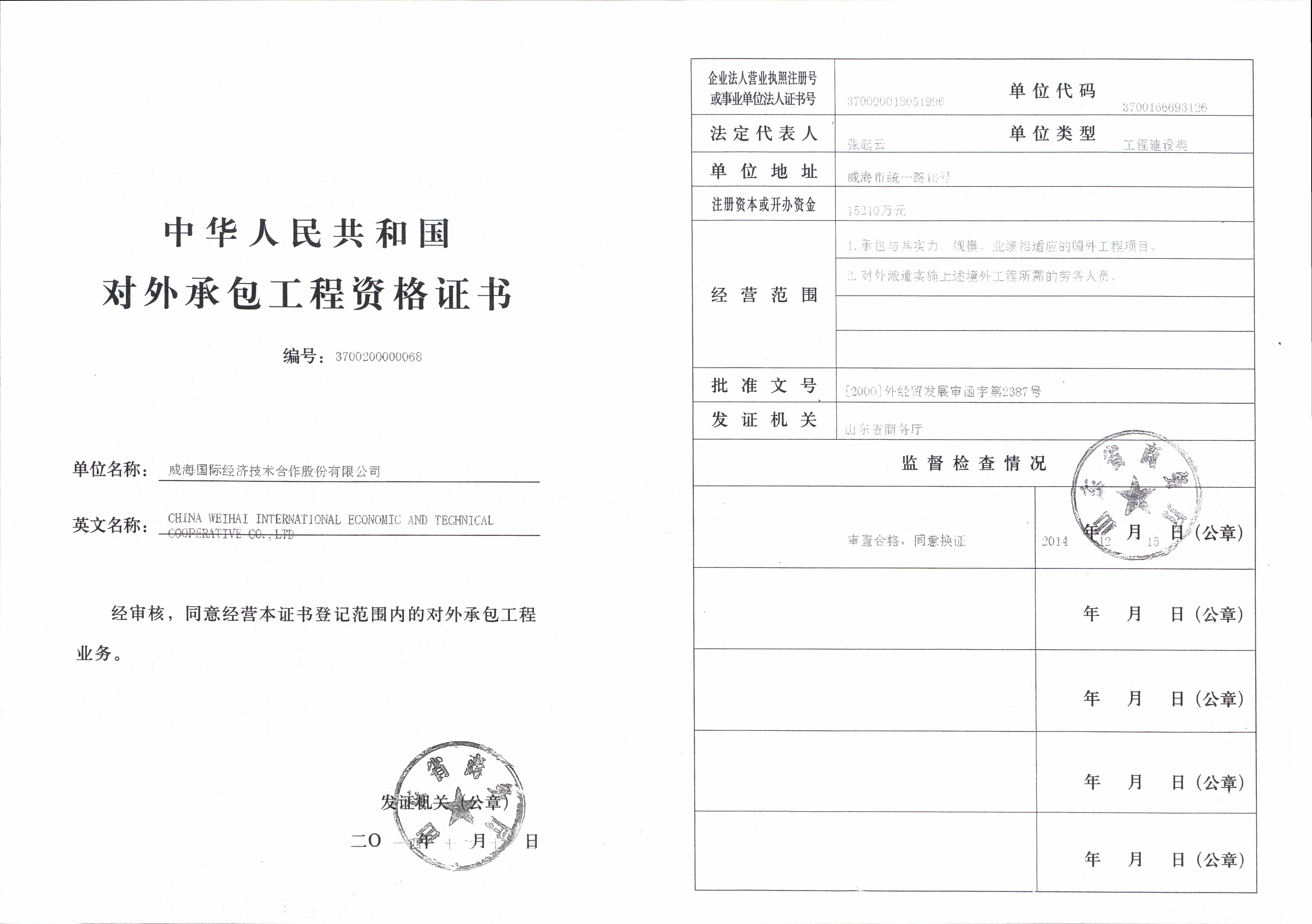 Tous droits réservés.:Weihai International Economic & Technical Cooperative Co.,Ltd(c)N°16, rue de Tongyi, ville de Weihai, Chine 魯ICP備12002982號(hào)-3 Tél:86-0631-5233588 Fax:86-0631-5224345 魯公網(wǎng)安備 37100202000269號(hào) Soutien technique:L'audition de logiciel
