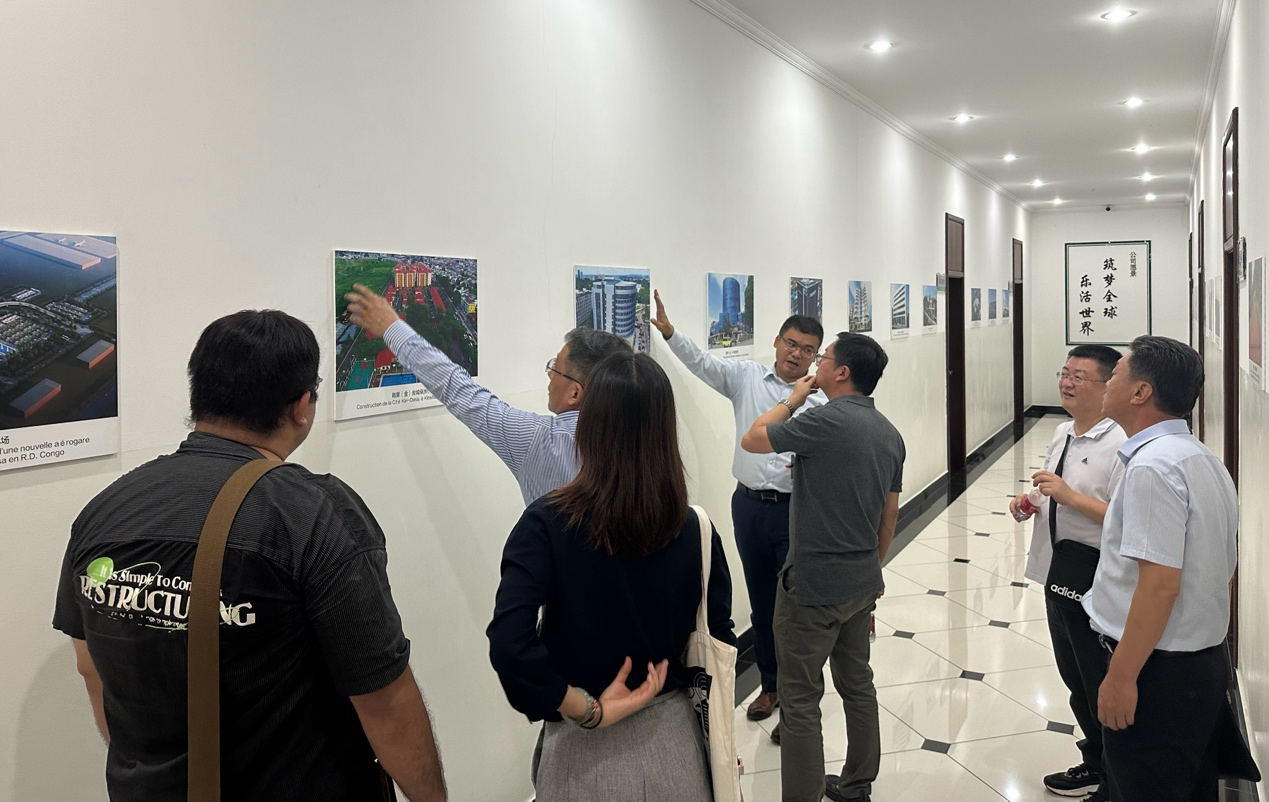 Par la suite, l'Ambassadeur Zhao Bin et sa délégation ont visité le chantier du projet de batiment de bureau de l'H?tel Tulipe et la Cité Kin-oasis en construction en République démocratique du Congo. Le Directeur général Yu Dejiang a comparé les biens immobiliers de la Cité et a présenté la planification globale de la Cité et le type de logement des biens immobiliers, etc. à l'Ambassadeur et à sa délégation.