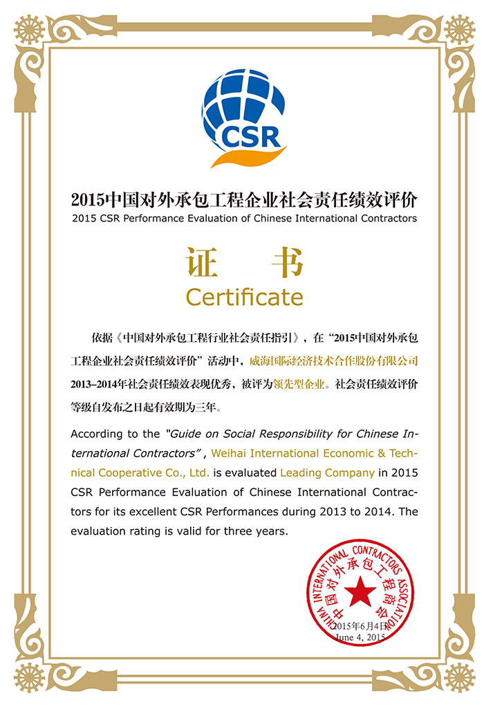 山東省登録地以外施工建設(shè)先進(jìn)企業(yè)