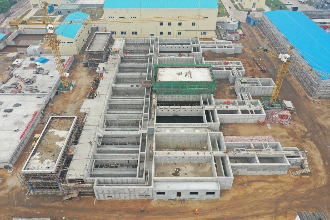 10月8日、水処理構(gòu)築物の二階屋根板のコンクリート打設(shè)完了に伴い、コンゴ民主共和國(guó)歐左內(nèi)給水2期プロジェクトは成功裏に本體落成を果たした。本件プロジェクト建設(shè)內(nèi)容は、行政棟、薬品倉(cāng)庫(kù)、総合水処理構(gòu)築物、逆洗浄ポンプ室、清水池、均質(zhì)池などを有し、コンクリート総使用量12000m3である。プロジェクト建築主は大統(tǒng)領(lǐng)選挙への支援に向け、主體工事の工期を半年ほど繰り上げた2023年10月31日までの竣工を要求した。プロジェクトチームは合理的に工程を再編成し、従業(yè)員の超過(guò)勤務(wù)を手配、最終的にオーナー要求の工期より22日早く主體工事を完成させ、円満に任務(wù)を遂行した。