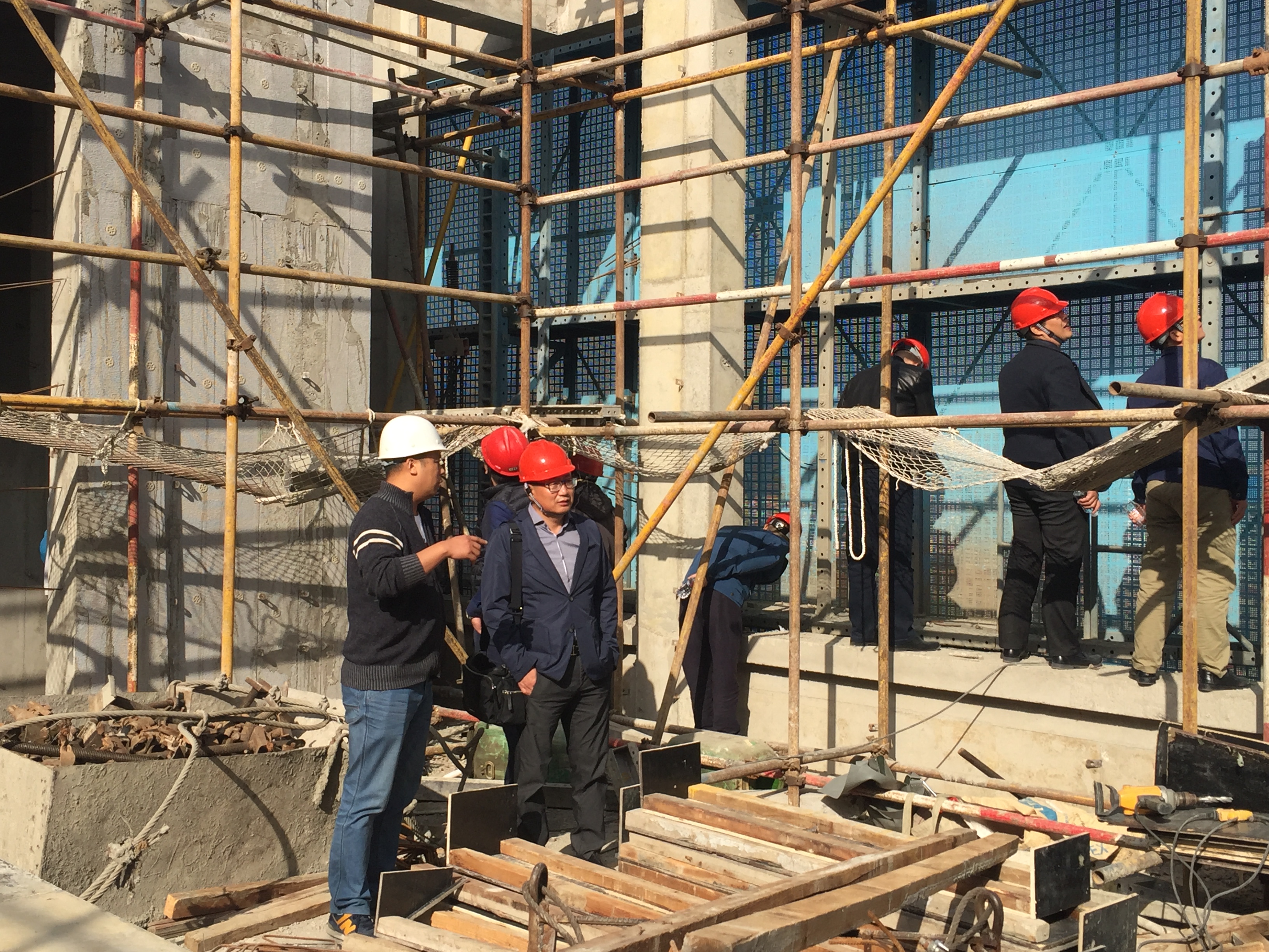 10月23日上午,公司副總裁郝玉成、總工程師吳世昕帶領(lǐng)公司工程技術(shù)人員赴威建集團承建的迪尚﹒悅海家居項目參觀學習集成附著式升降腳手架技術(shù)。