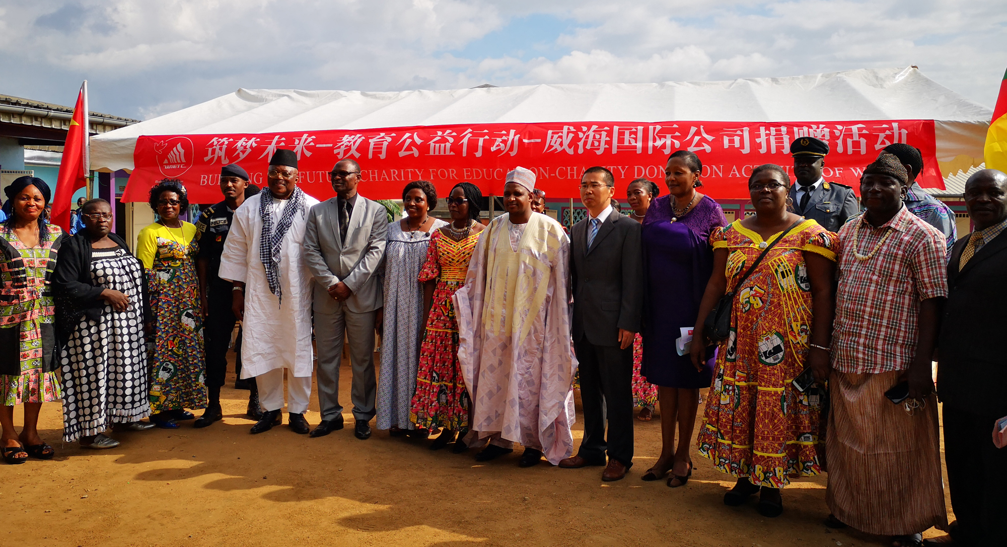 杜阿拉第3區(qū)副省長致辭,他表示,這些捐贈的教學物資代表了威海國際公司支持喀麥隆教育發(fā)展的真誠愿望,此次捐贈活動不僅表明威海國際公司與當?shù)鼐用窕突ブ?、和諧相處,也體現(xiàn)了中喀之間的友好關系。他贊揚威海國際公司是有愛心、有社會責任感的企業(yè),也感謝威海國際喀麥隆公司建設了杜阿拉東部進城道路,該項目將極大地改善喀麥隆的交通狀況,在喀麥隆城市和經(jīng)濟建設中發(fā)揮積極作用。