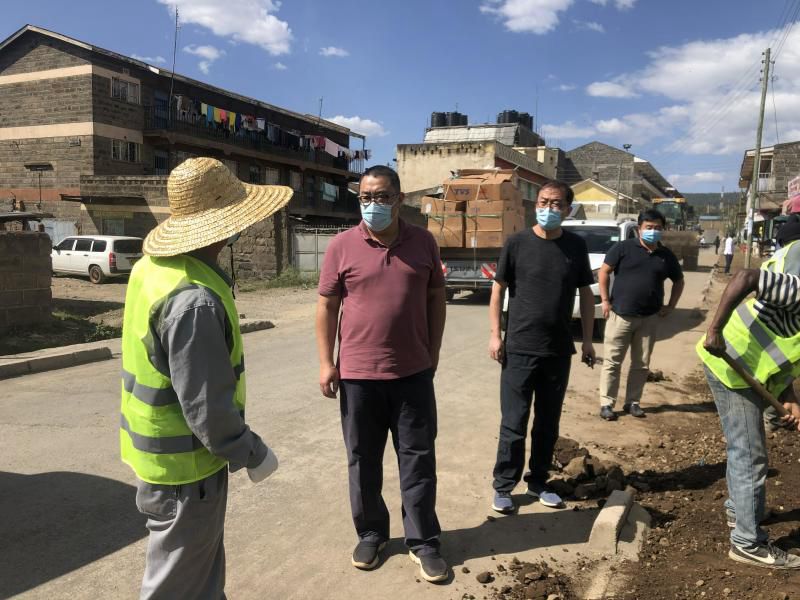 12月13日一早,張師程總裁、朱勇濤總會(huì)計(jì)師在肯尼亞正威公司于海波總經(jīng)理的陪同下,驅(qū)車4個(gè)小時(shí)從內(nèi)羅畢來到納庫魯?shù)缆讽?xiàng)目視察,看望了項(xiàng)目組人員,就項(xiàng)目完工后設(shè)備和人員退場等事宜提出了指導(dǎo)意見。