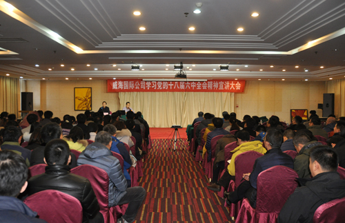 12月14日,公司黨委在索菲亞酒店召開學習黨的十八屆六中全會精神宣講大會,邀請中共威海市委宣講團成員、威海市紀委駐商務局紀檢組副組長何虹同志作宣講報告。公司黨委副書記吳得當同志主持會議,在威全體黨員、員工共計300多人參加了學習。